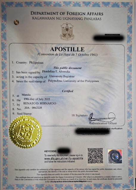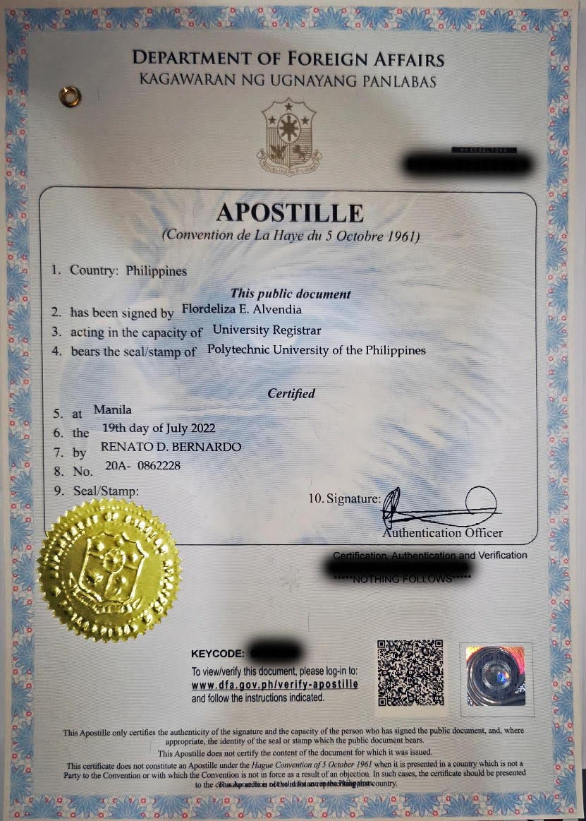 DFA Authentication / Apostille for TOR / Diploma CTC